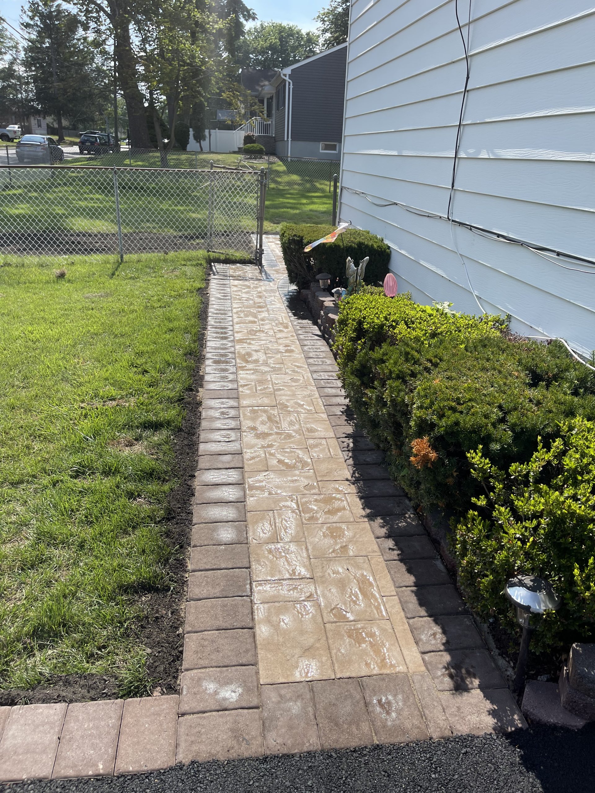 Removed patio, Straightened edges, Extended patio, Built new walkway, Modified stone base, Roll stone to compaction